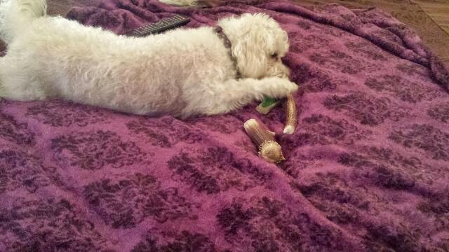 Buster enjoying his selection of chews